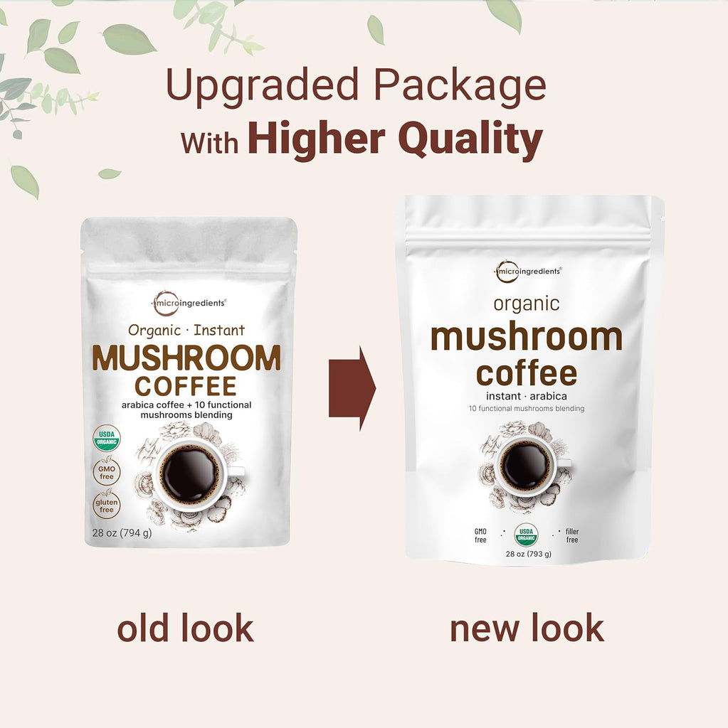 Organic Instant 10 in 1 Mushroom Coffee Powder, 28 Ounce (317 Servings) Premium Arabica Coffee with Lion’s Mane, Chaga, Reishi,& More